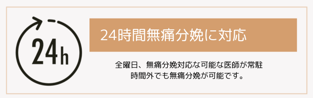 当院では、全曜日で無痛分娩へ対応が可能な医師が勤務しているため、いつでも無痛分娩が可能です。